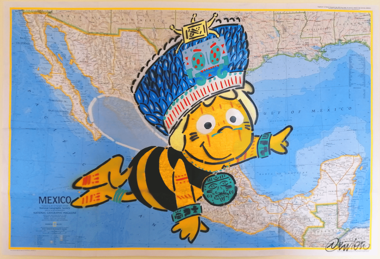 BIG: Stencil Multilayer (8) su carta geografica del Messico.