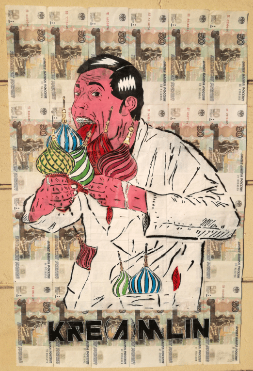 L’opera è basata sul gioco di parole tra cremino e Kremlino, infatti l’uomo tiene in mano diversi gelati, ma i vari gusti sono le cupole del Kremlino di Mosca