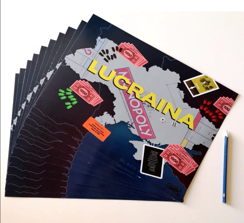 Negli ultimi mesi l’Ucraina fa parte della cronaca quotidiana, sentendo sempre nominare le parole “L’Ucraina”, ho voluto fonderle insieme, generando una nuova parola “Lucraina”. Quest’ultima richiama il verbo lucrare, guadagnare.