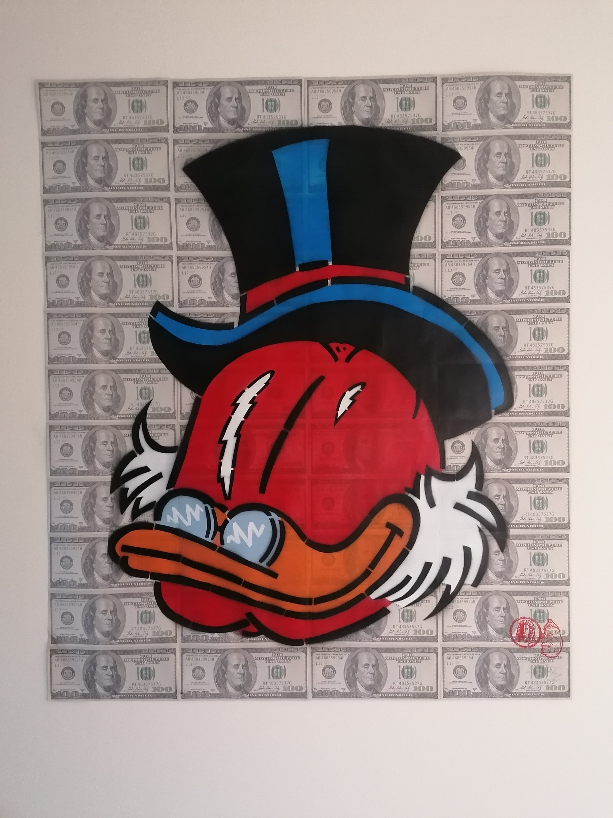 L’utilizzo del dollaro come supporto crea un collegamento con l’animo da affarista del personaggio